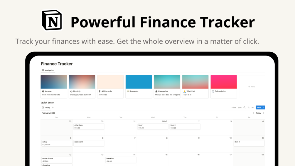 This template provides a convenient way to track personal finances that is not only user-friendly but also incredibly practical. Compared to other similar financial tools, the Powerful Finance Tracker template not only has a more affordable price point but also offers more comprehensive content.